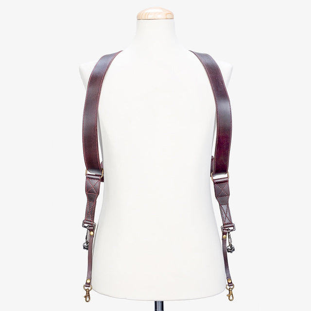 Harness sling strap system made with a double strap to hold two cameras at the same time. This double camera strap is made thinking in all the details but putting special attention on the security of your camera gear and the comfortability during the long days of shootings. We ensure that all the material we use are made from the best quality and all the pieces are super strong.